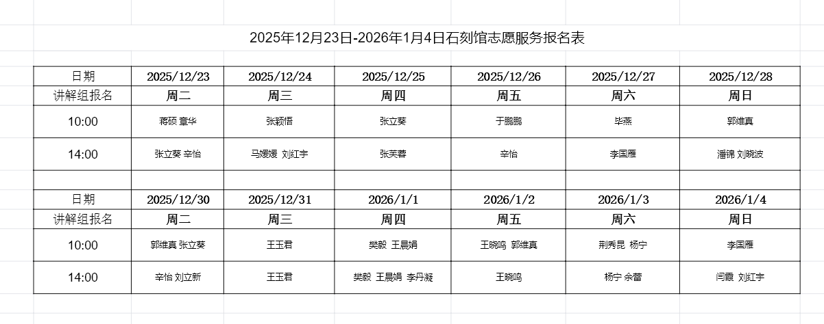 志愿讲解安排(12月23日至1月4日)